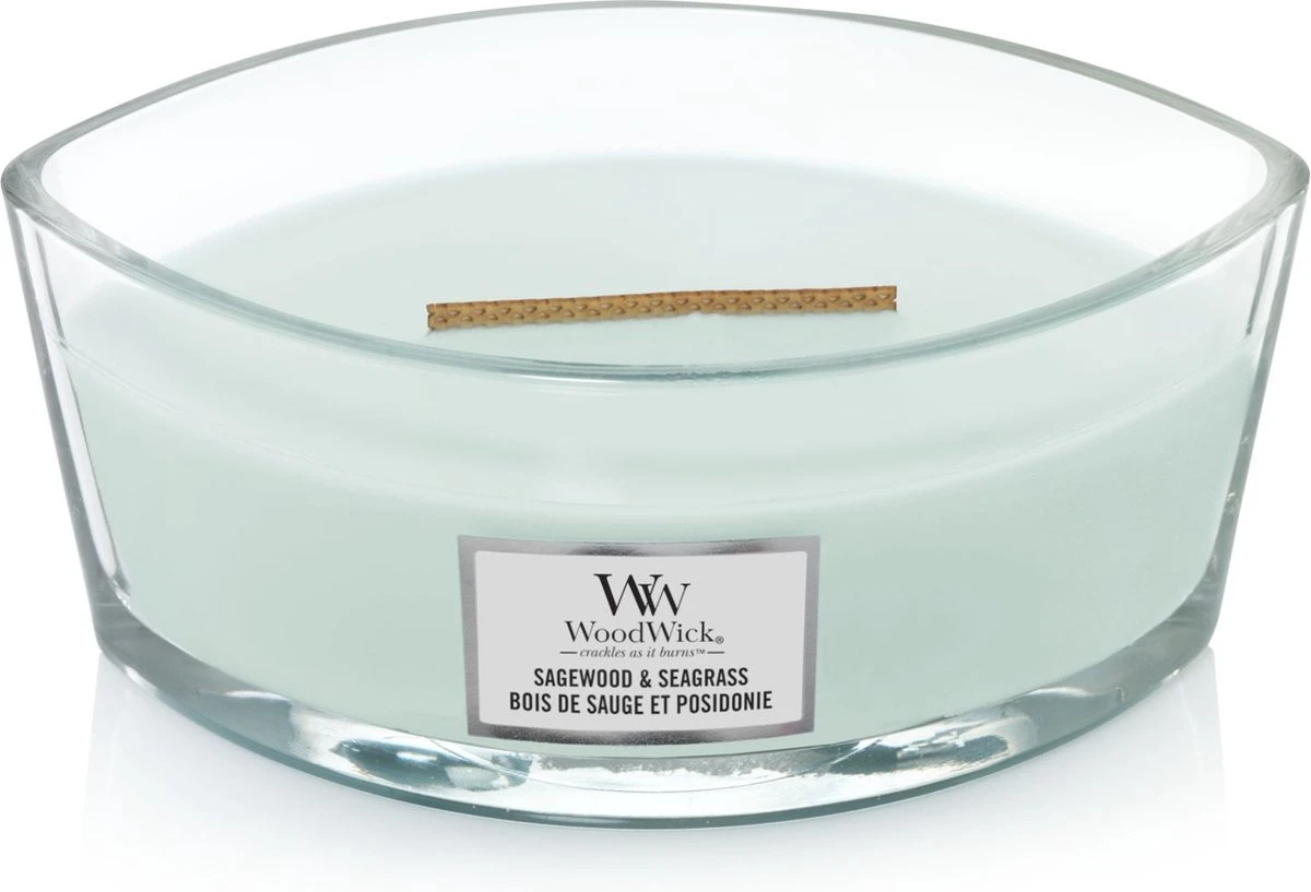 Met WoodWick Sagewood & Seagrass verspreid je de heerlijke geur van een luchtige, maar complexe combinatie van citrus, oceaan mineralen en witte salie noten door je huis. Daarnaast geeft de houten lont een rustgevend knisperend geluid, alsof de haard aanstaat. Time to relax. Met deze WoodWickgeurkaars geniet je ongeveer 50 branduren van een heerlijk geurende kaars, die alle zintuigen prikkelt.
