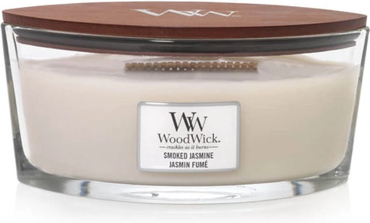 Geniet met WoodWick Jasmine van de aroma’s van delicate jasmijnblaadjes, verweven met warme ceder en rokerige wierook. Daarnaast geeft de houten lont een rustgevend knisperend geluid, alsof de haard aanstaat. Time to relax. Met deze WoodWickgeurkaars geniet je ongeveer 50 branduren van een heerlijk geurende kaars, die alle zintuigen prikkelt.