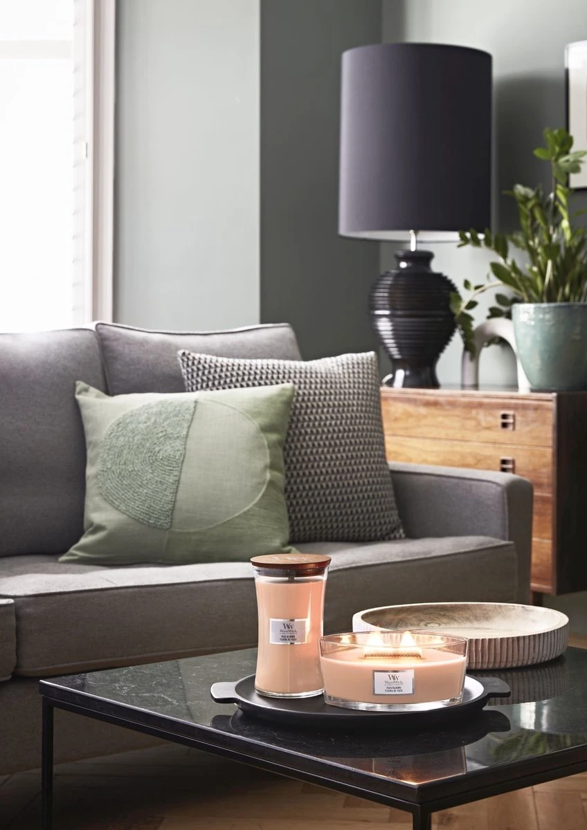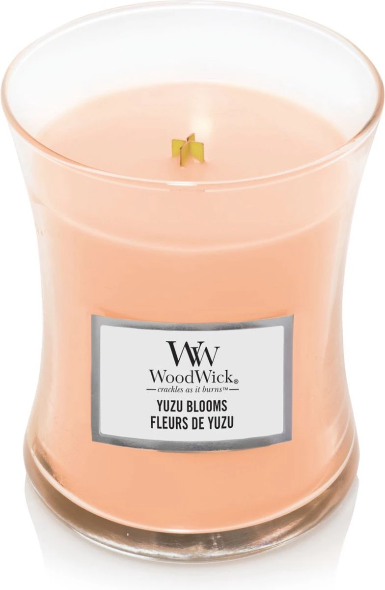 Met WoodWick Yuzu Blooms verspreid je de heerlijke geur in je huis. Levendige citroen- en mandarijnnoten worden gebalanceerd door zoete pioenroos en citrusbloesem. Daarnaast geeft de houten lont een rustgevend knisperend geluid, alsof de haard aanstaat. Time to relax. Met deze WoodWick geurkaars geniet je ongeveer 90 branduren van een heerlijk geurende kaars, die alle zintuigen prikkelt. Topnoten: citroen, mandarijn en jeneverbes Hartnoten: pioen, magnolia en oranjebloesem Basisnoten: jeneverbes, vanille en amber