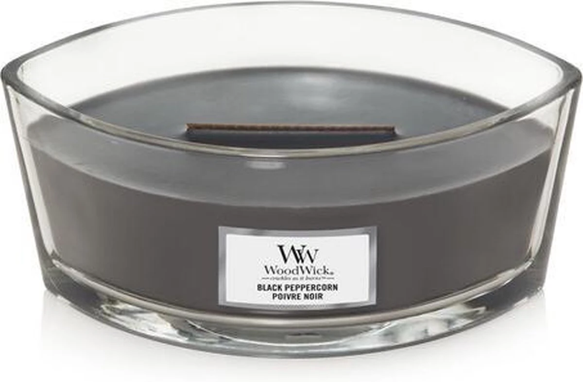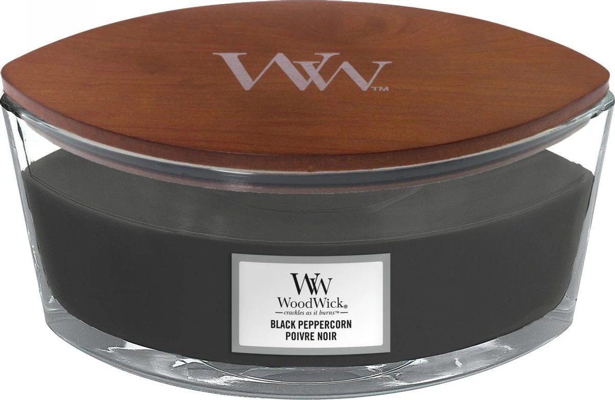 De geur van WoodWick Black Peppercorn is een peperige mix van aardse kruiden omgeven door zoete amber en romige sandelhoutaroma’s. Daarnaast geeft de houten lont een rustgevend knisperend geluid, alsof de haard aanstaat. Time to relax. Met deze WoodWickgeurkaars geniet je ongeveer 50 branduren van een heerlijk geurende kaars, die alle zintuigen prikkelt.