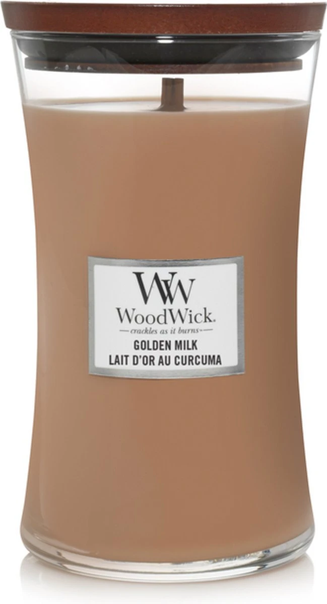 Woodwick Kaars Large Golden Milk kopen?Zoete melk gemixt met exotische kruiden met bloemige noten, dat omschrijft de geur van WoodWick Golden Milk. Daarnaast geeft de houten lont een rustgevend knisperend geluid, alsof de haard aanstaat. Time to relax. Met deze WoodWick geurkaars geniet je ongeveer 130 branduren van een heerlijk geurende kaars, die alle zintuigen prikkelt. Topnoten: saffraan, komijn en kurkuma Hartnoten: tuberoos, frangipani en gardenia Basisnoten: vanille, room en melkWil je meer weten over de verschillende geurnoten? Bekijk dan hier onze keuzegids.