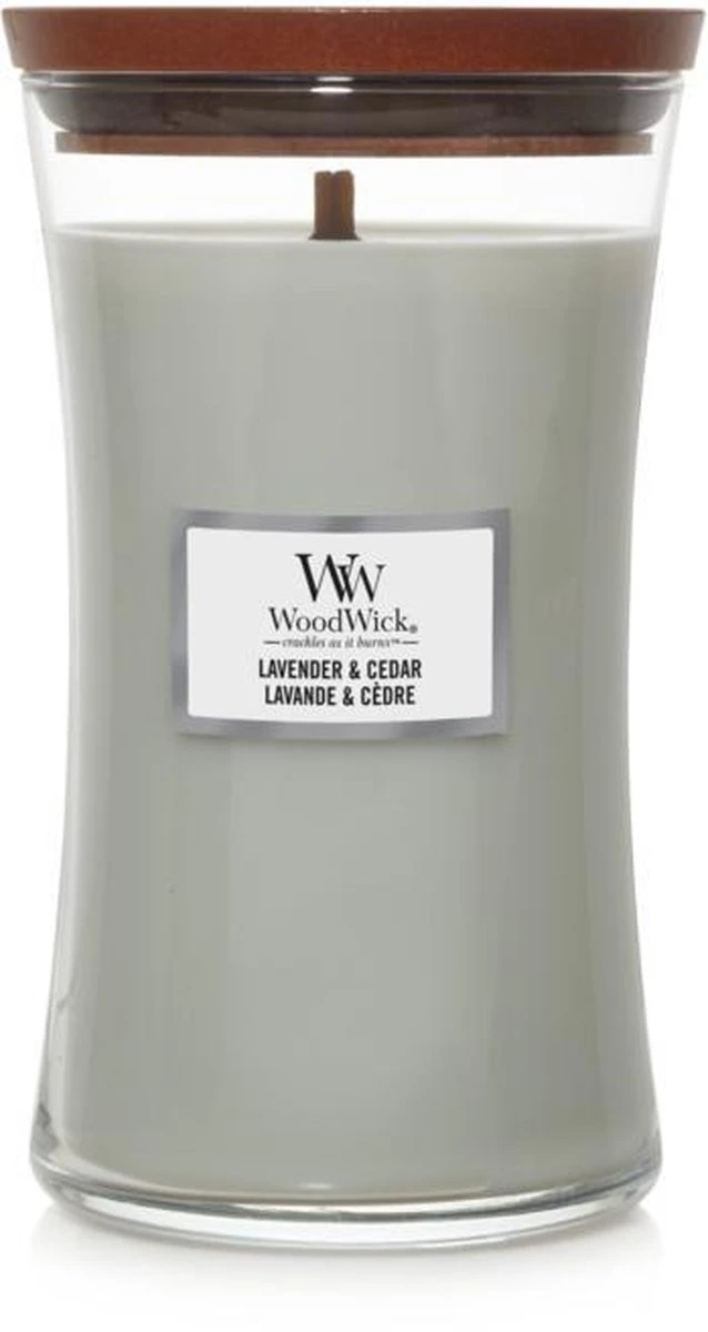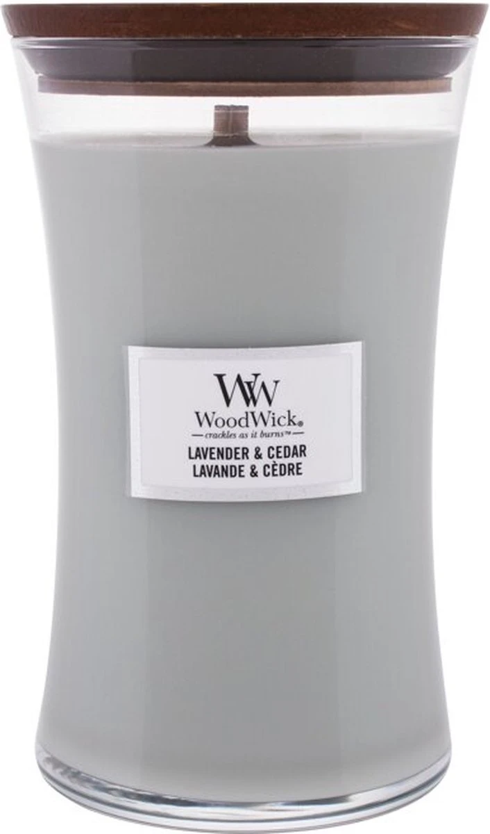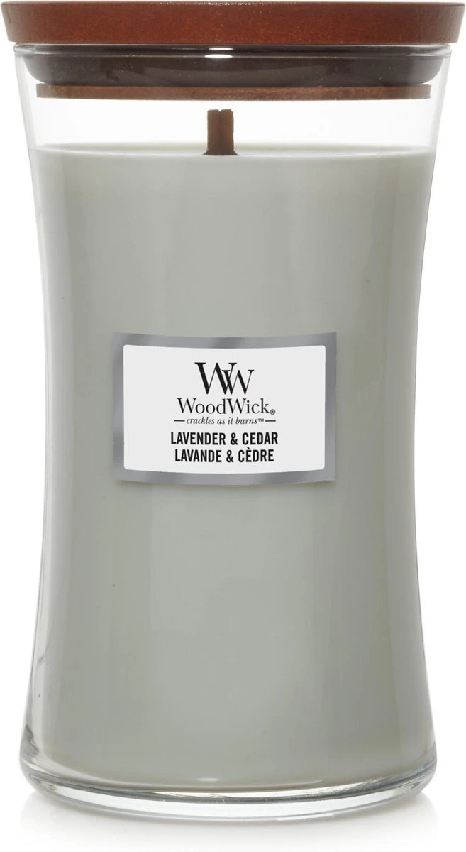 Aroma’s van roze peper en lavendel worden in WoodWick Lavender & Cedar gecombineerd met tonen van saliebloem, patchouli en blond hout. Daarnaast geeft de houten lont een rustgevend knisperend geluid, alsof de haard aanstaat. Time to relax. Met deze WoodWickgeurkaars geniet je ongeveer 130 branduren van een heerlijk geurende kaars, die alle zintuigen prikkelt.