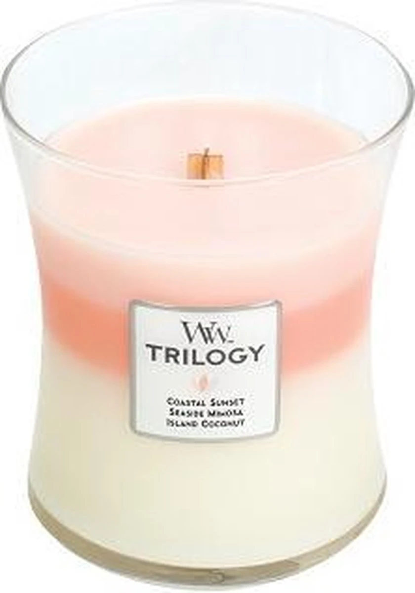 Stel je voor: na een lange dag kom je thuis, ploft op de bank en steekt de kaarsen aan voor wat extra gezelligheid. Wie wil er dan niet een heerlijke, huiselijke geur ruiken zodra de kaarsen aan het branden zijn? Geniet van een trilogy van de geuren Coastal Sunset, Seaside Mimosa en Island Coconut. De houten lont geeft een rustgevend knisperend geluid, alsof de haard aanstaat. Time to relax. Met deze WoodWickgeurkaars geniet je ongeveer 90 branduren van een heerlijk geurende kaars, die alle zintuigen prikkelt.