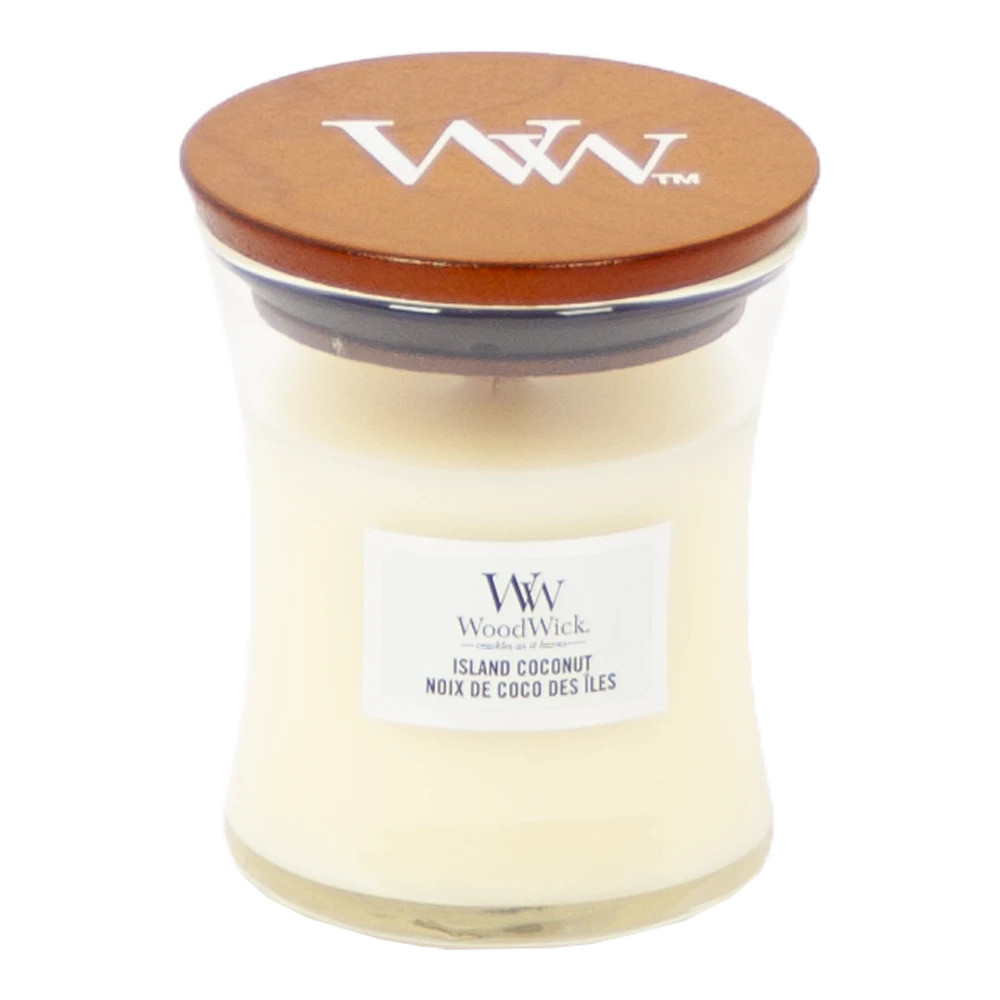 De Island Coconut Woodwick geurkaars met sappige ananas, gemengd met romige kokosnoot zorgt voor de perfecte tropische traktatie. Een heerlijke zoete geur!