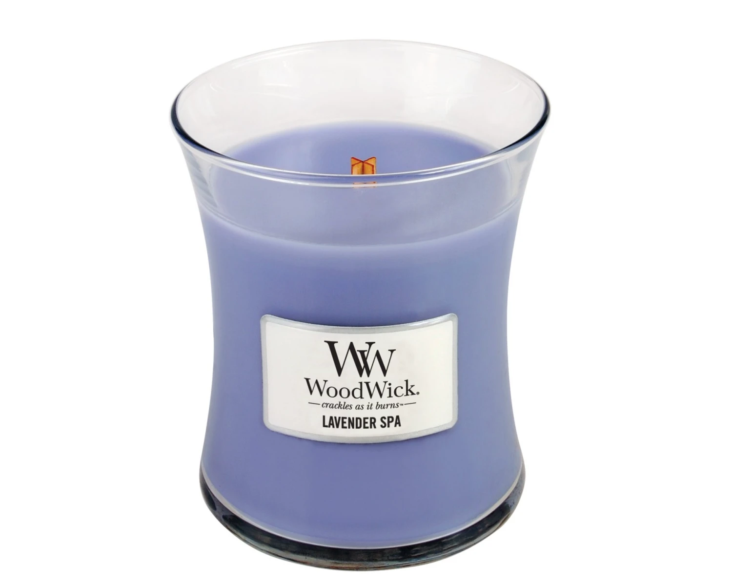 De geurkaars WoodWick Lavender Spa Medium Candle