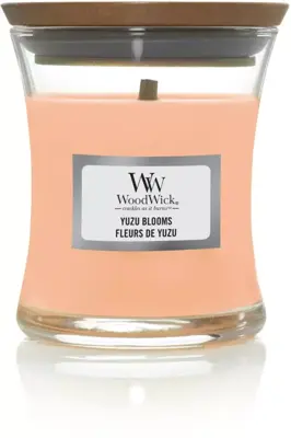 WoodWick geurkaars yuzu blooms mini candle is voorzien van een natuurlijk, houten lont waardoor het rustgevende geluid van een knisperend haardvuur een unieke sfeer creëert, terwijl jouw woonruimte gevuld wordt met een authentieke, natuurlijke geur.