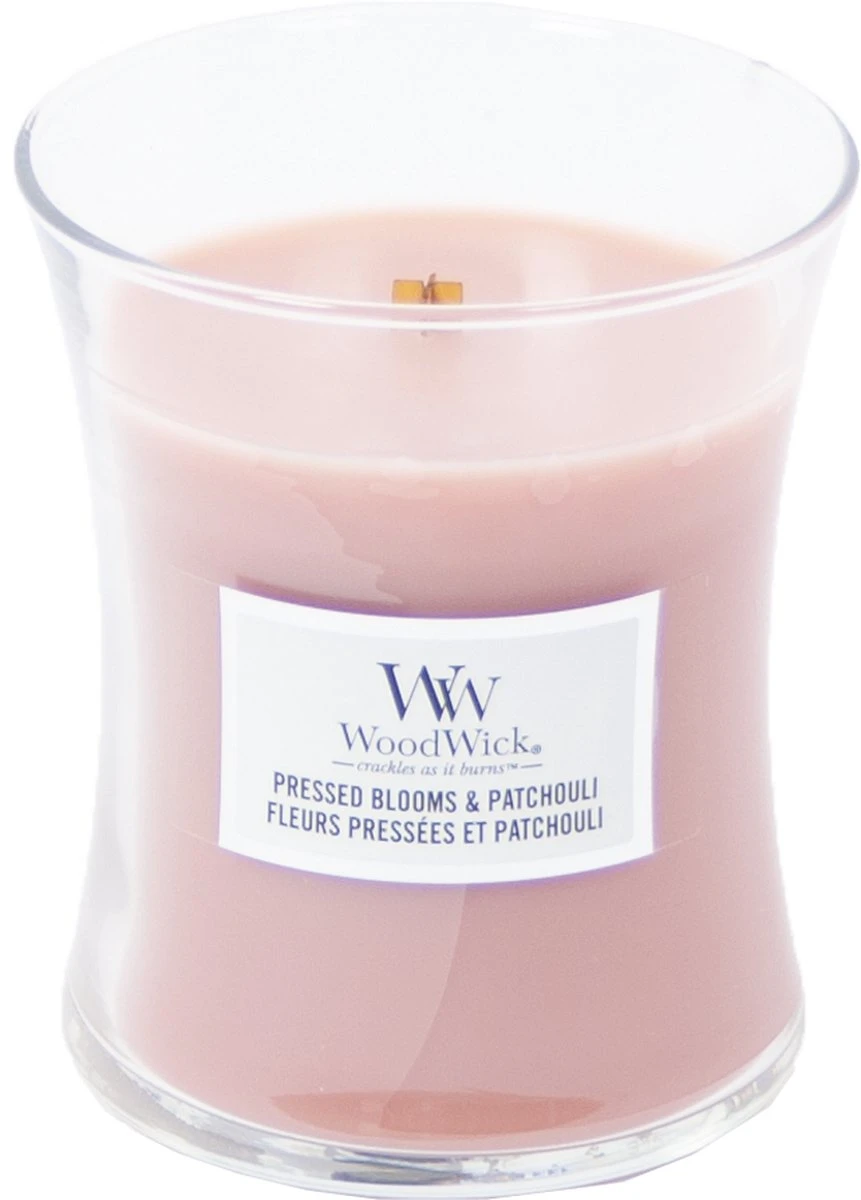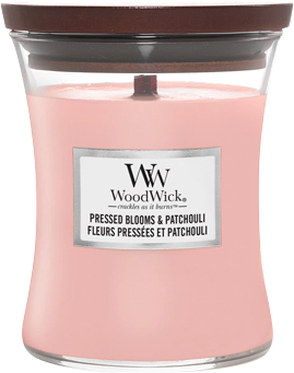 De WoodWick Pressed Blooms & Patchouli geur is geïnspireerd op trendy geurnoten van aardse groenten, zomerhout en de heerlijkste bloemen. Deze WoodWick lentegeur laat de geuren van delicate bloemen die bloeien op een bed van houtachtige vetiver- en patchoeli-aroma’s door je huis verspreiden. Daarnaast geeft de houten lont een rustgevend knisperend geluid, alsof de haard aanstaat. Time to relax. Met deze WoodWickgeurkaars geniet je ongeveer 90 branduren van een heerlijk geurende kaars, die alle zintuigen prikkelt.