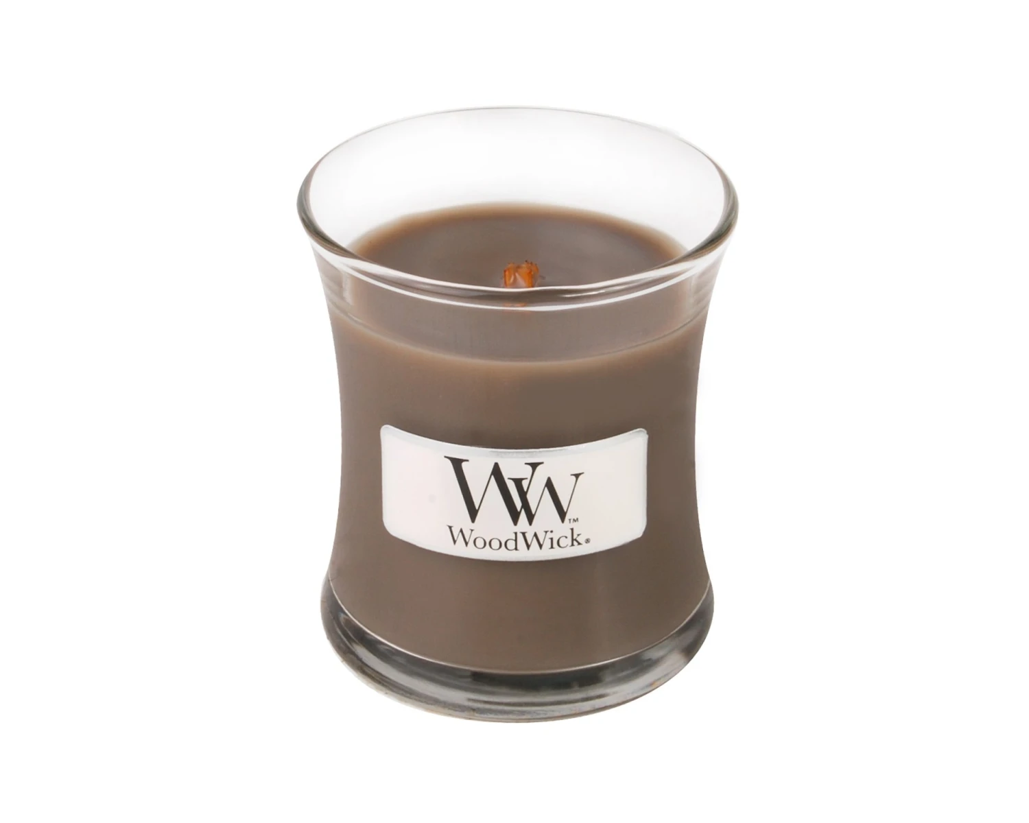 De geurkaars WoodWick Sand & Driftwood Mini Candle
