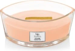 De mini Woodwick kaars met de geur Seaside mimosa neemt je mee naar een zomers strand. De geur mix van sappige citrus en champagne druiven doet je denken aan een heerlijk verfrissend drankje op het strand. Deze kaars is de kleinste Woodwick kaars die is voorzien van het stijlvolle glas en houten deksel. Deze kaars geeft je minimaal 20 uur lang het plezier van deze heerlijke geur.