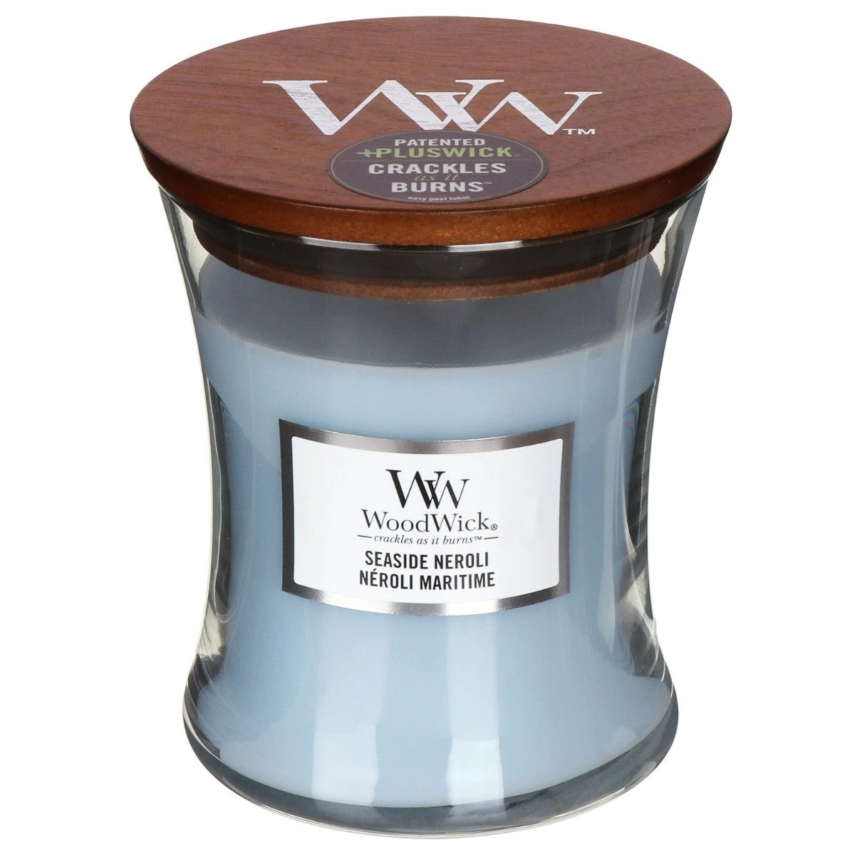 De geurkaars WoodWick Seaside Neroli Medium Candle