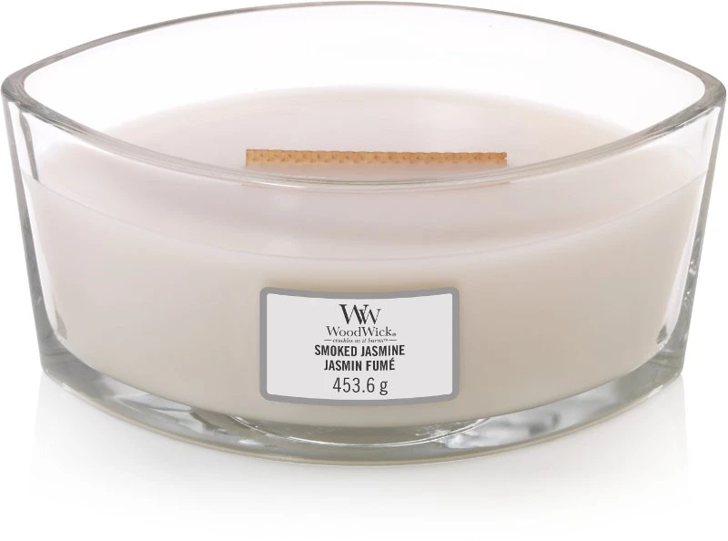 De geurkaars WoodWick Smoked Jasmine Ellipse Candle