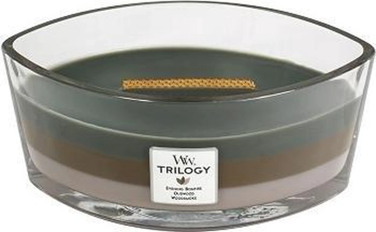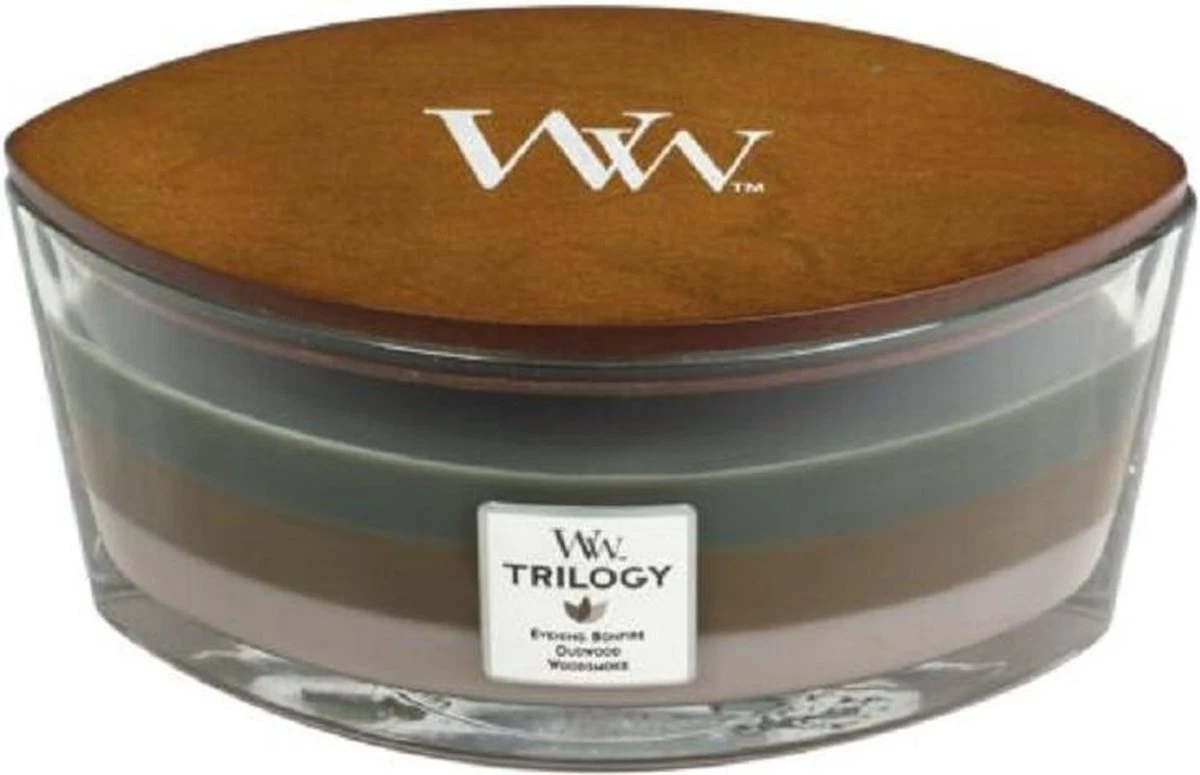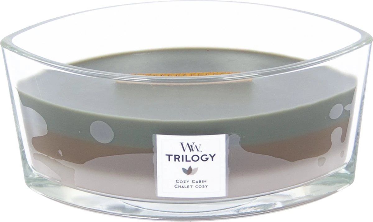 Woodwick Trilogy Cozy Cabin Ellipse Candle – Geurkaars