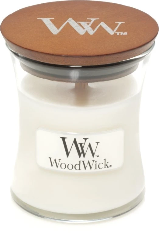 De geurkaars WoodWick White Teak Mini Candle